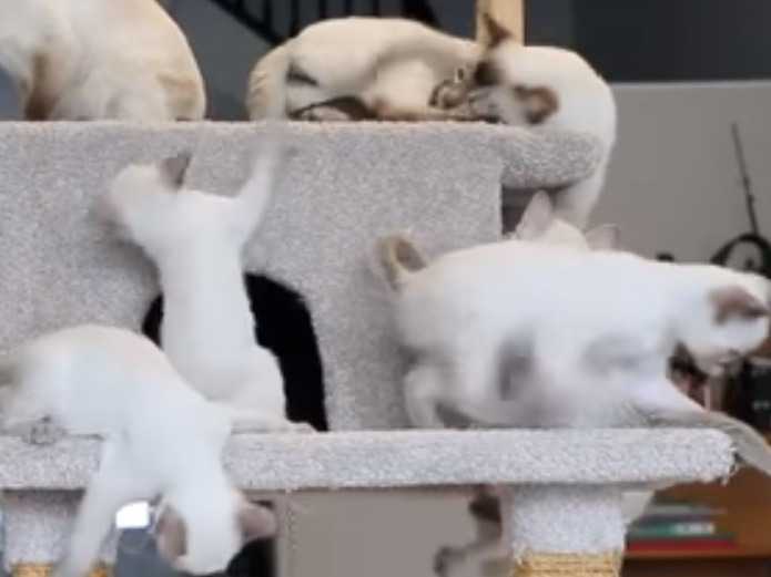 Voici une compilation de bons moments avec des chats Thaï. Peu importe leur âge, le jeu les attire toujours et ces chatons sont réellement très dynamiques, considérant que tout est un prétexte pour jouer. Une vraie vie de chat ! Retrouvez donc des instants plein de tendresse qui vous feront rire et sourire.