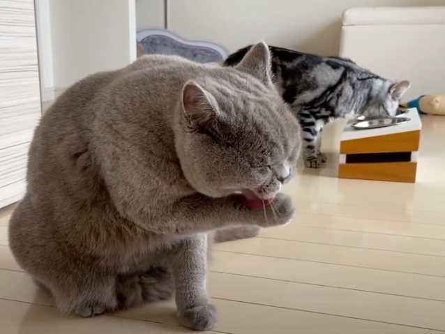 La cohabitation entre plusieurs chats peut s'avérer très simple. En effet, dans cette vidéo, un chat American Shorthair et un British Shorthair ont l'air de vivre ensemble sereinement. Ils peuvent se tenir à côté l'un de l'autre pour manger, jouer ou encore se toiletter, et ce, sans se déranger.