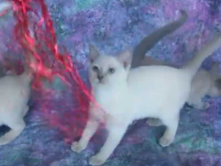 Cette vidéo montre de très beaux chatons Tonkinois cohabitant ensemble. En effet, les petits félins de quelques semaines semblent être très complices. Ils sont positionnés sur le canapé et s'aident pour attraper le jouet en forme de plumeau qu'anime leur propriétaire.