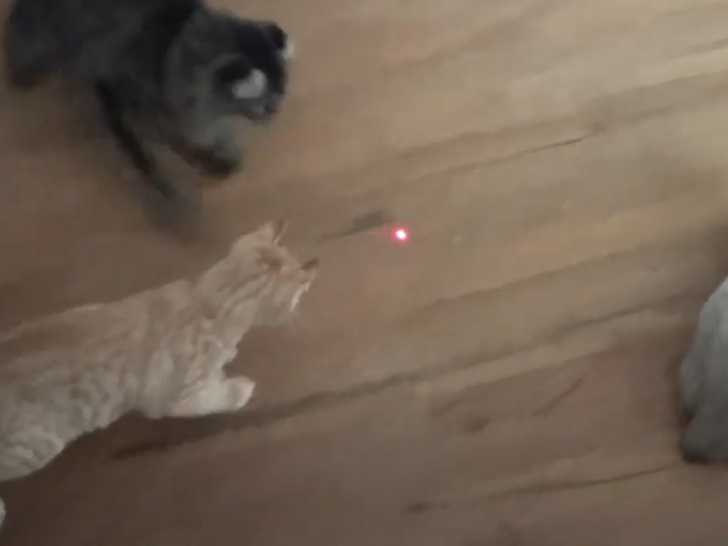 Les accessoires pour jouer avec un chaton sont multiples. Dans cette vidéo, des chatons de race Highlander sont totalement fous d'un laser. En effet, le propriétaire utilise l'objet pour stimuler les petits félins qui semblent adorer ce jouet.