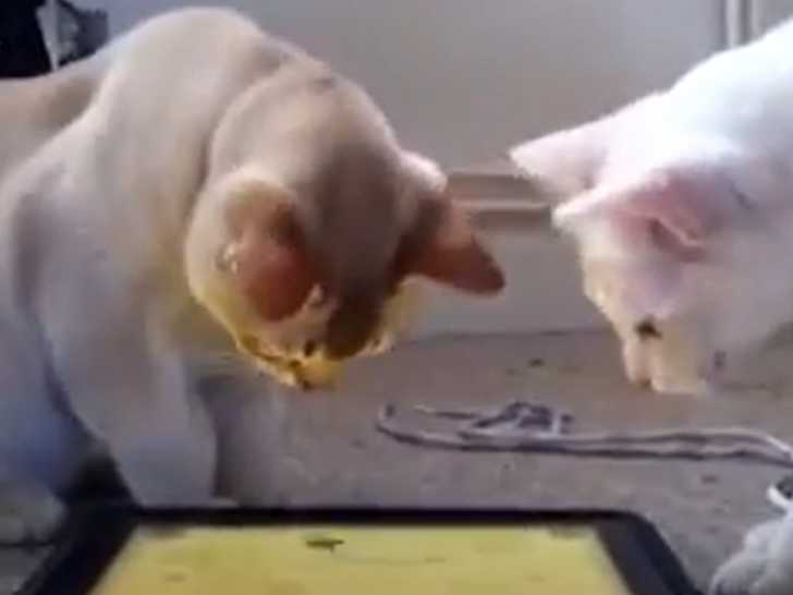 Insolite ! Deux chats de race Burmilla sont complétement absorbés par l'écran de l'Ipad. En effet, les deux compères ont l'air de s'amuser avec le contenu qui est diffusé sur la tablette. Ils essaient d'attraper avec leurs pattes des éléments qui les intriguent.