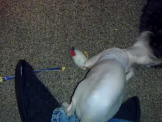 Cette vidéo montre le propriétaire d'un chat Elf-Cat qui essaie de le stimuler. En effet, à l'aide d'un jouet en forme de plumeau, le maitre titille son félin qui est totalement fou de ce jouet !