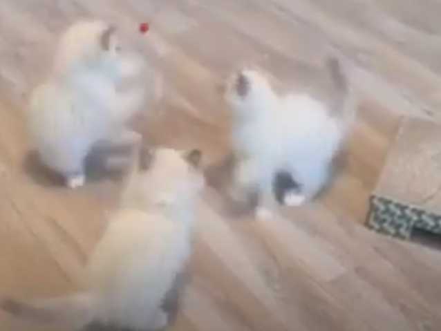 Cette vidéo montre le propriétaire de plusieurs Sacré de Birmanie qui essaie de les stimuler. En effet, les chatons de 9 semaines jouent avec un plumeau, une balle et un carton : les félins semblent adorer ce moment de jeu.