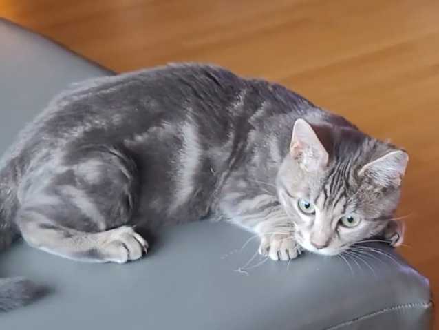 Ce Genetta déborde d’énergie : il bondit et se cache sous un canapé, puis quelques secondes plus tard attaque le tapis et attaque sa queue pour la lécher. Il ne s’accorde une pause que pour se faire caresser par son propriétaire, puis retourne s’amuser comme si de rien n’était.