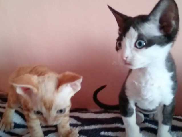 Cette vidéo montre le propriétaire de plusieurs chatons de race Devon Rex qui essaie de les stimuler. En effet, les petits félins jouent comme des petits fous avec un plumeau.