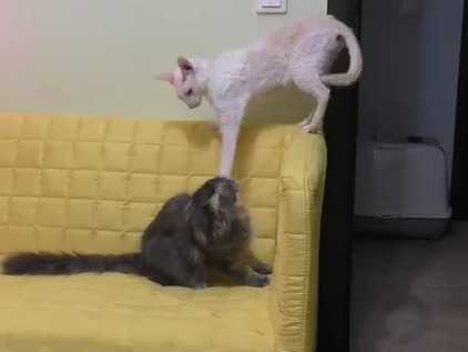 Qui ne s'est jamais surpris à passer des heures à observer des chatons qui jouent ensemble, et même des chats adultes d'ailleurs ? Ici ce sont deux chats magnifiques, un Maine Coon et un Cornish Rex, qui sont devenus les meilleurs amis du monde, autant pour la bagarre que pour les câlins.