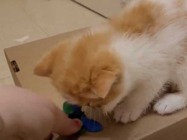 Le jeu fait partie intégrante du quotidien de certains félins qui peuvent s'avérer plus ou moins joueur. C'est en effet le cas dans cette vidéo, avec un Exotic Shorthair. Le chaton joue avec un plumeau avec grand interêt.