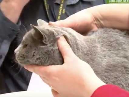 Cette vidéo présente un concours félin qui a lieu lors du Concours Général Agricole à Paris qui récompense les meilleurs produits et animaux du terroir français. L'animatrice et le jury présentent les trois différentes races de chats (Russe, Oriental et Siamois) et les évaluent en direct.