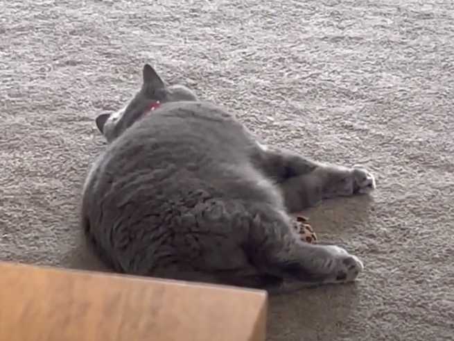 Cette vidéo montre un très beau félin de race British Shorthair en train de jouer sur le tapis du salon avec une balle. En effet, le félin s'amuse avec son jouet avec beaucoup d'intérêt et semble passer un moment très agréable.