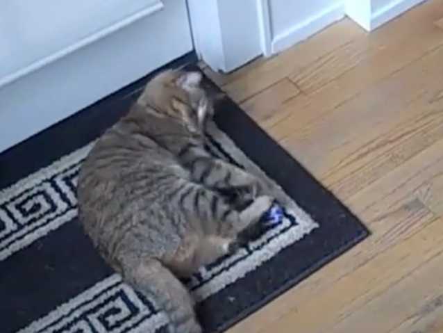 Cette vidéo montre le propriétaire d'un chat de race Californian Spangled en train de filmer ce dernier en pleine partie de jeu. En effet, le chat est totalement fou de son jouet en forme de souris : il le mord et le griffe.