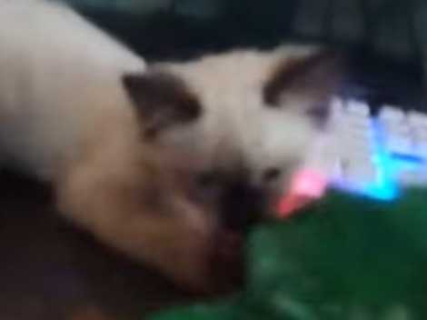 Cette vidéo montre un chaton de race Asiatique en train de jouer avec la complicité de son maitre. En effet, le félin tente d'attraper la feuille que lui tend son propriétaire et semble adorer la texture.