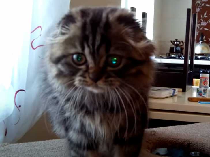 Cette vidéo montre un adorable chaton de race Scottish Fold assis sur l'arbre à chat en train de jouer avec un plumeau et avec la complicité de son maitre. En effet, le petit félin semble adorer s'amuser avec cet accessoire bleu !