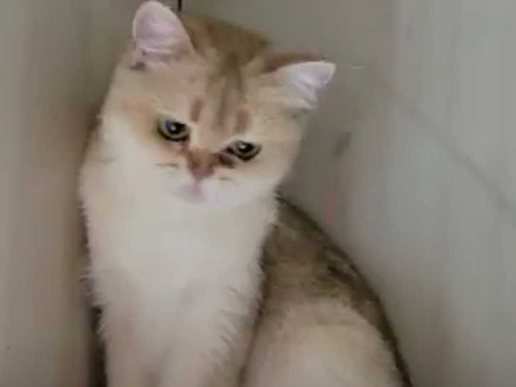 Cette vidéo montre un chaton de race Chinchilla qui est posé sur une étagère. En effet, le petit félin semble être au calme puis, son maitre essaie de le stimuler à l'aide d'un plumeau. Le chat finit par s'amuser avec le jouet.