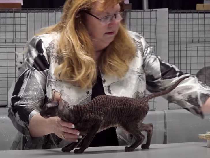 Cette vidéo montre un chat de race Cornish Rex durant de l'exposition féline du CFA International Cat Show de 2017 à Portland (Oregon, USA). En effet, le félin est observé par un juge afin d'établir un classement. De plus, lors de cet événement, le chat est présenté au public sous tous ses angles afin que les aspects de cette race soient mis en avant.