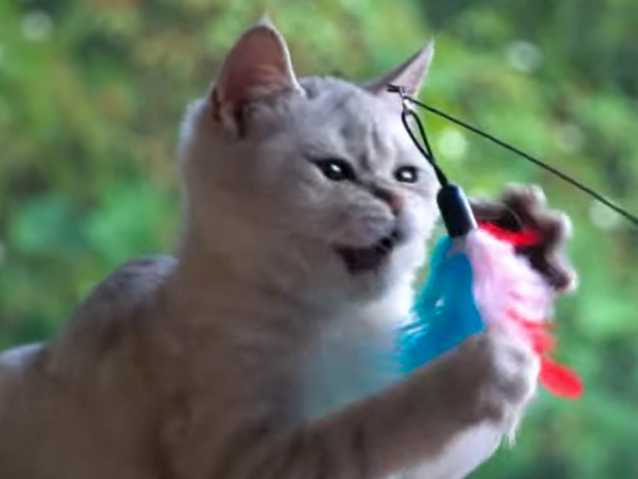 Cette vidéo montre un chat de race Scottish Fold en train de jouer avec un plumeau. En effet, le félin s'amuse comme un petit fou lorsque son maitre agite le jouet devant lui : il le mord et le griffe.