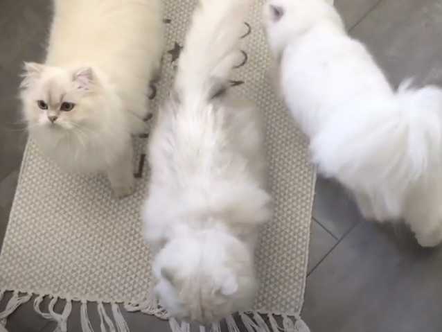 Cette vidéo montre des chats de race British Longhair qui attendent patiemment leur gamelle. En effet, les félins tournent en rond, se frottent aux pieds de leur propriétaire et semblent impatients de déguster le repas.