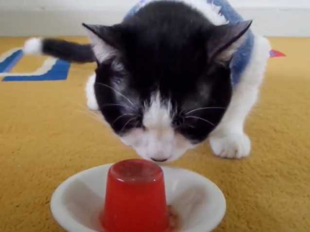 Un propriétaire de chats a décidé de leur faire goûter de la gelée au saumon. Ainsi, Kryshtal, un American Curl, Haiyan, un Bleu Russe et Bruno un Munchkin, viennent à tour de rôle déguster ce plat particulier. Bien qu'il n'y ait qu'une seule assiette, les chats laissent leurs congénères manger tranquillement et respectent leur tour.