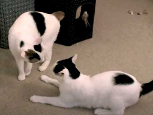 Faire cohabiter plusieurs chats ensemble peut s'avérer compliqué. C'est en effet le cas dans cette vidéo avec deux Bobtail Japonais qui se tournent autour, essaient de se donner des coups de pattes pour dominer l'un sur l'autre.