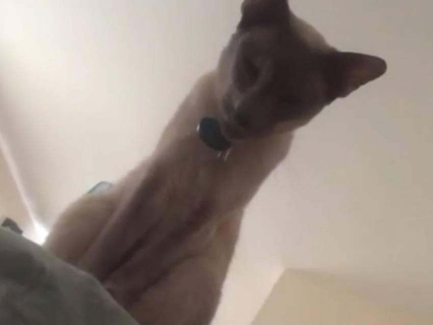 Ce chat Thaï a trouvé la parfaite technique pour réveiller chaque jour son maître et obtenir ainsi son petit déjeuner. Bien assis sur son dos, il attend tranquillement et en silence que ce dernier ouvre les yeux. Peu importe qu'il soit 5h du matin, l'appel de la croquette justifie tous les moyens