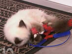 Cette vidéo explique pourquoi certains chats peuvent avoir tendance à tout mordre et surtout donne des astuces pour faire cesser ce comportement. L'exemple est donné avec un Sacré de Birmanie qui a été jusqu'à faire une occlusion intestinale parce qu'il mâchait tout à la maison.