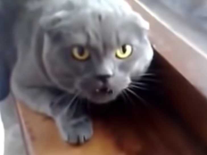 C'est le cas de ce chat, qui miaule de façon très équivoque. Toute sa posture montre sa colère : ses oreilles sont rabattues en arrière, son corps est prostré, il ouvre la gueule et montre les dents... Mieux vaut ne pas trop s'approcher de lui, car il semble prêt à passer à l'attaque...