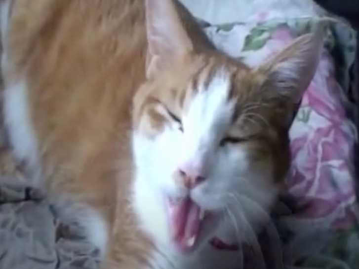 Cette vidéo montre un chat de race Bobtail Japonais en train de miauler en regardant son propriétaire. En effet, le félin est confortablement allongé sur un canapé et les intonations de ses miaulements résonnent comme l'alphabet.