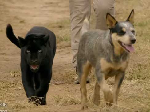 Le jaguar fait indubitablement partie des prédateurs les plus redoutables. Troisième plus gros félin après le lion et le tigre, il possède une carrure suffisante pour tuer des caïmans sans difficultés. Quoi donc de plus surprenant que d'en voir un se lier d'amitié avec un Bouvier Australien ! Certes, il s'agit d'une jeune jaguar orpheline qui vit en captivité et est donc habituée à la présence de l'Homme, mais cette relation reste tout de même surprenante car tout sauf habituelle.