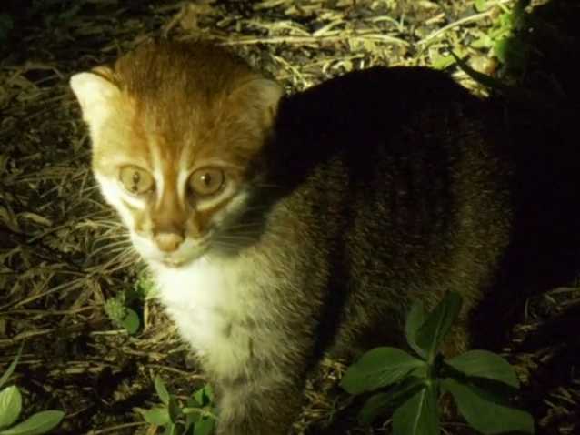 Un Chat à Tête Plate adulte est filmé avec un chaton au Parc national de Tanjung Puting, à Bornéo, en Indonésie. Bien que cela ne soit pas certain, il est probable que cette espèce chasse principalement de nuit. Elle est victime de la raréfaction des milieux humides qui fournissent l'essentiel de ses proies.