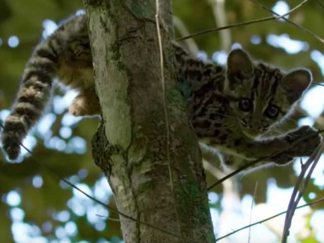 Malheureusement, dans la mesure où vit essentiellement dans les arbres, il est grandement menacé par la déforestation qui sévit en Amérique latine. Le Guyana, un minuscule pays coincé entre le Suriname et le Venezuela, a pour l'heure été épargné par le phénomène : c'est donc un refuge pour ce petit félin aux allures de funambule.