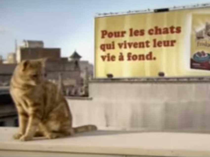 En 2009, la marque Friskies a marqué les esprits avec une publicité originale mettant en scène son égérie : un petit chat roux plein d’énergie. Après avoir goûté aux croquettes, ce dernier se transforme en véritable cascadeur, enchaînant les acrobaties et les péripéties les plus spectaculaires. Une publicité amusante et dynamique qui associe le caractère joueur et intrépide du chat à l’univers de la marque.