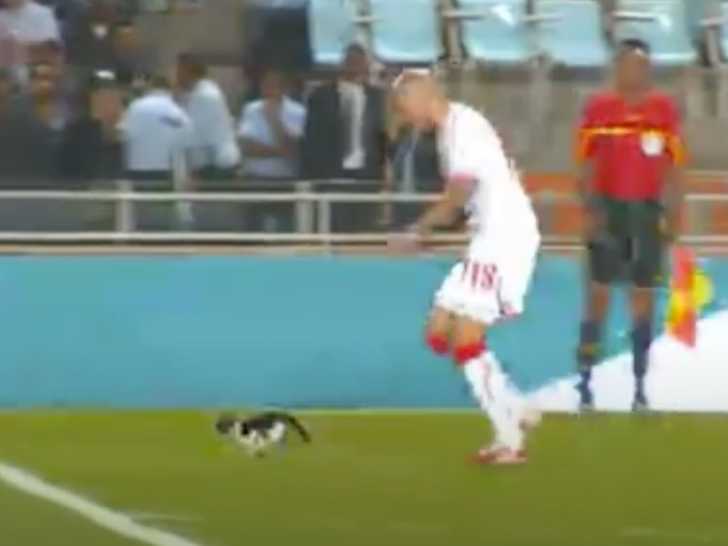 Durant un match de foot entre la France et la Tunisie, un chat s'est retrouvé dans la partie. En plein milieu du match, celui-ci est entré sur le terrain et s'est mis à gambader tranquillement sur la pelouse. Les joueurs ont essayé d'attraper l'animal afin de le faire sortir du jeu. C'est finalement le joueur numéro 18 qui a réussi à le faire sortir du terrain.