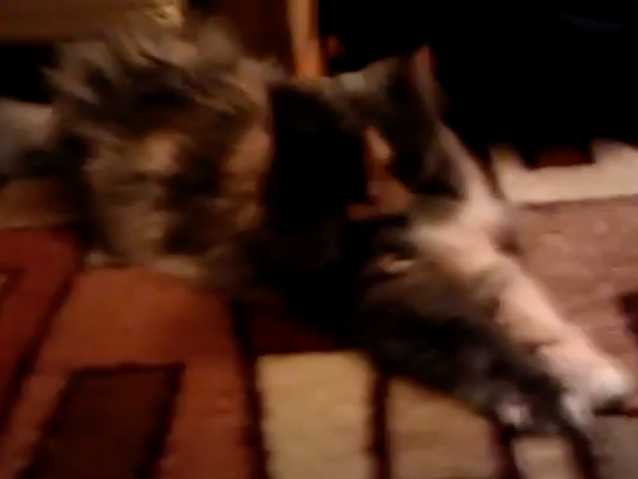 Cette vidéo montre un chat de race Anatoli qui est allongé dans le salon de son propriétaire. En effet, le félin est posé sur le tapis et attend paisiblement que son maitre lui fasse des câlins. Il semble être apaisé et en totale confiance.