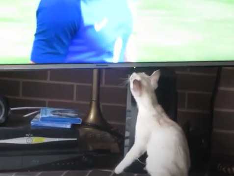 Insolite : ce Burmilla regarde la télé ! En effet, cette vidéo montre un chat qui est totalement absorbé par l'émission qui se déroule à la télé. Ensuite, le petit félin joue sur le tapis avec un jouet en forme d'insecte. Il déborde d'énergie !