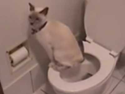 Ce chat est-il particulièrement maniaque ou a-t-il été éduqué de façon très stricte ? Toujours est-il que ce minou a pris l'habitude d'utiliser les toilettes pour faire ses besoins, de la même manière que le font ses maîtres... L'histoire ne dit pas s'il se lave bien les pattes en sortant !