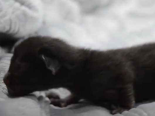 Adorable ! Cette vidéo montre un chaton de seulement quelques jours de race Elf-Cat en train de tenter de faire quelques pas. Ces premiers pas sont très timides mais le petit félin semble courageux.