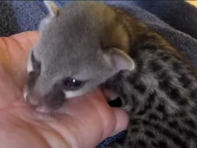 Les premiers moments de vie dans un nouveau foyer peuvent être stressant pour un chaton. Le propriétaire de ce Genetta l'a bien compris ! C'est pourquoi, il prend le petit félin sur ses genoux et le câline tendrement. Ce dernier semble adorer cela !