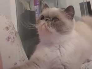 Cette vidéo montre un félin Exotic Shorthair qui se roule sur son tapis afin d'obtenir des caresses et de l'attention de la part de son propriétaire : un vrai petit filou ! Le chat de cette race est connu, entre autres, pour avoir un tempérament affectif et calme.