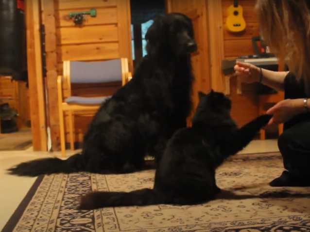 Un Howavart donne la patte lorsque sa maîtresse lui montre sa main. Il n'est pas difficile d'apprendre des tours à ce chien intelligent. Dans cette vidéo, les chats de la maison connaissent aussi quelques tours. Ils savent donner la patte mais aussi se tenir debout pour obtenir leur récompense. Le chien semble s'entendre parfaitement avec ses amis félins.