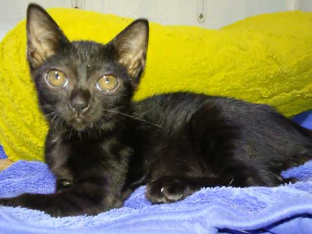 Un chat Konja est confortablement allongé sur une serviette éponge. Il se tient immobile et se contente de suivre des yeux la personne qui le caresse. Il semble profiter pleinement du moment.