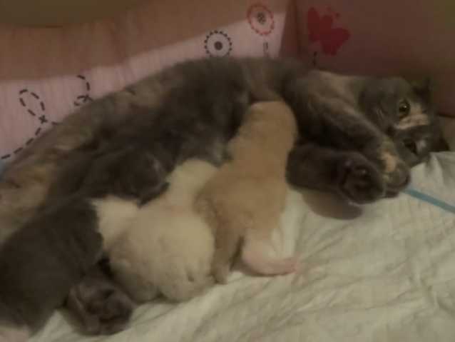 Bonjour, Jasmine, notre petite boule de poils qui n’a même pas 1 an, vient de mettre bas. C'est un chat de petit...