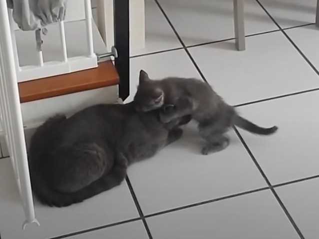 La cohabitation entre chats peut être un vrai plaisir. C'est en effet le cas dans cette vidéo avec une famille de chats Européen qui semble s'aimer à la folie. La maman câline son chaton qui petonne sur cette dernière. Un vrai moment de tendresse !
