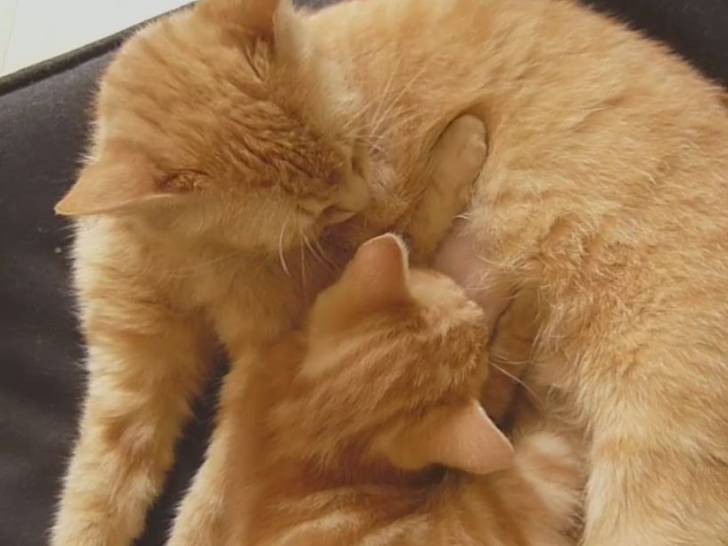Dans cette vidéo, un chaton Européen roux du nom de Phang tète sa mère, prénommée Maneki, qui est couchée à ses côtés. Le petit félin est alors âgé de seulement deux mois. La chatte profite de l'allaitement pour lécher ce dernier, et ainsi faire sa toilette.