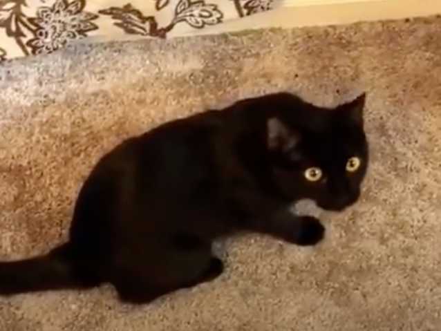 Cette vidéo montre un chat de race Bombay qui est très mignon. En effet, le petit félin de robe noire cherche l'attention de son maitre, se couche sur le tapis et se roule au sol : un vrai moment de tendresse !