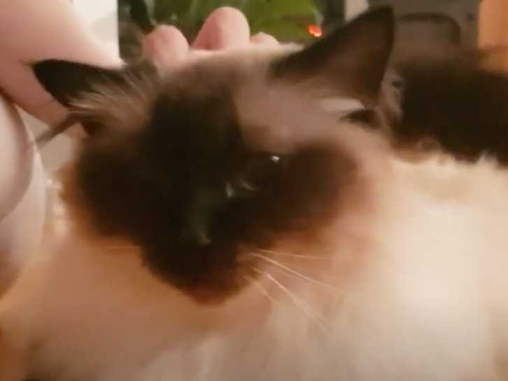 Le chat de race Sacré de Birmanie est connu pour avoir un tempérament affectueux, calme et aimant la présence d'enfants. Cette vidéo montre un félin de cette race qui se frotte aux jambes de sa maitresses afin d'obtenir des caresses et de l'attention de la part de celle-ci. Sa propriétaire le comprend et lui offre une session de câlins bien méritée !