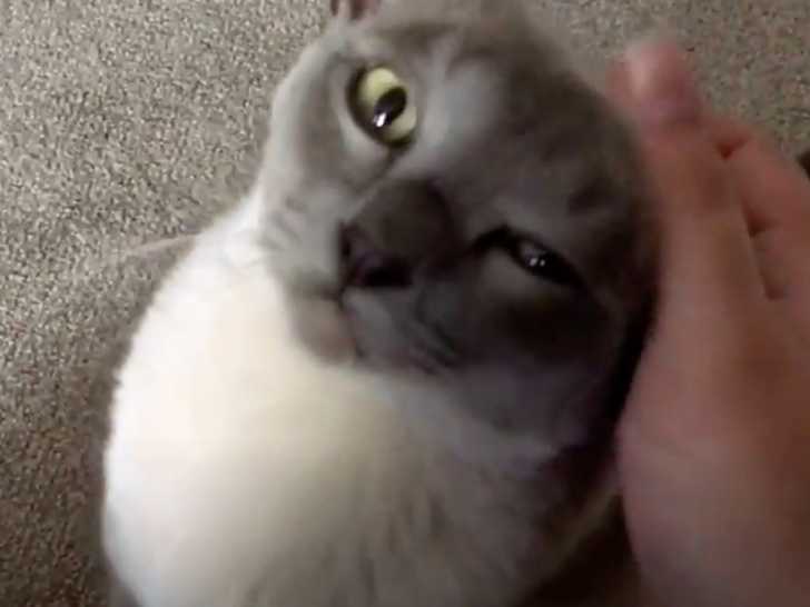 Cette vidéo est très attendrissante... un chat de race Burmese est en train de faire de se faire câliner par son maitre sur les genoux de ce dernier. En effet, le magnifique félin semble avoir une totale confiance en son propriétaire et se laisse caresser de manière très tendre. Le regard porté par le félin à son maitre détient beaucoup d'amour.