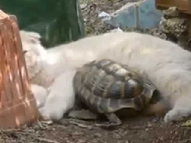 Insolite ! Cette vidéo montre la cohabitation d'un petit chaton de race Highland Straight et d'une tortue. Les deux compères se baladent en extérieur et semblent véritablement s'apprécier. En effet, ils se trouvent l'un à côté de l'autre et ne paraissent pas se gêner. Au contraire, le petit félin s'installe confortablement juste à côté de la torture : une vidéo vraiment rigolote !