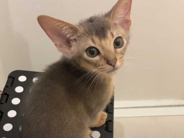 Le chat de race Abyssin est connu pour avoir un tempérament affectif, aimant les enfants et comme étant un très grand joueur. Cette vidéo montre un chaton de cette race qui se frotte à son propriétaire afin d'obtenir des caresses et de l'attention de la part de ce dernier : un vrai petit filou !