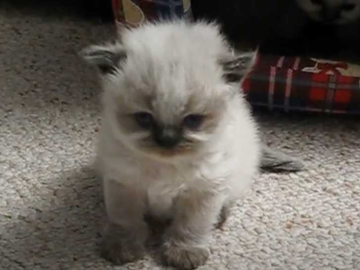 Cette vidéo montre un adorable chaton de quelques jours de race Himalayen en train de se reposer. En effet, le petit félin est assis et essaie de se lever pour effectuer quelques pas. Il oublie vite cette idée pour se reposer.