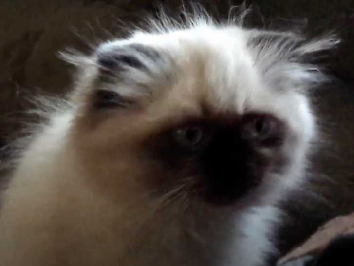 Certains félins sont calmes, posés et aiment être peu dérangé. C'est en effet le cas dans cette vidéo avec un chaton de race Himalayen qui est positionné sur un canapé. En effet, le petit félin observe son maitre et la pièce dans laquelle il est positionné avec attention et curiosité et semble même vouloir quelque chose..