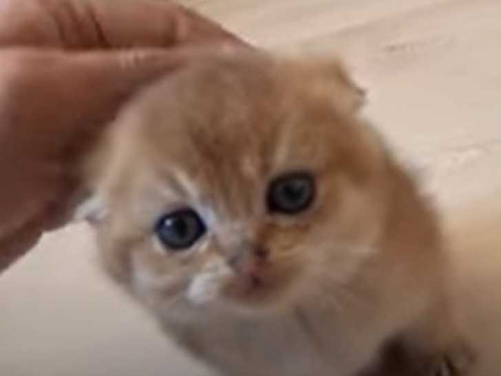 Très affectueux, ce chaton de race Scottish Fold souhaite obtenir des caresses de la part de son propriétaire. En effet, dans cette vidéo, le petit félin roux tend sa tête dès lors qu'il voit la main remplie de tendresse de son maitre s'approcher de lui.